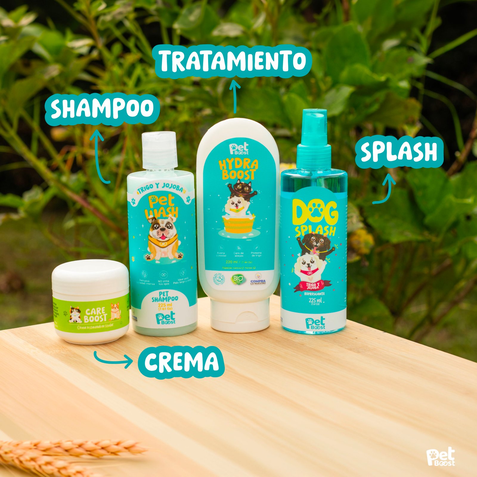 4. Frescura final: RocÃa el Dog Splash Trigo y Jojoba sobre el pelaje limpio y seco, evitando ojos y mucosas.